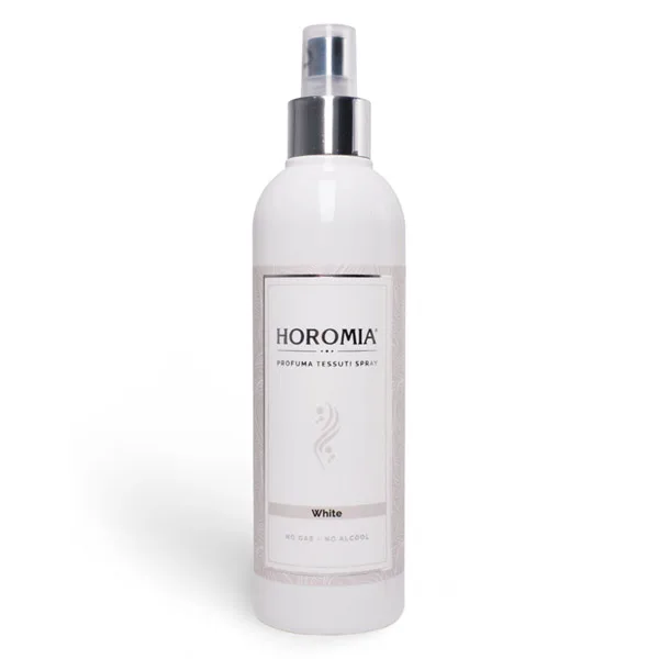 Inovativni proizvod White Horomia ne sadrži alkohol i plin. Pogodan je za sve vrste tkanina, uključujući svilu i kašmir. Proizvod ne ostavlja mrlje. Idealan je za zavjese, unutrašnjost automobila, sofe i odjeću. Proizvod sadrži molekule koje neutraliziraju neugodne mirise.